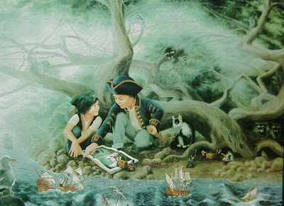 Of course, a jigsaw puzzle is only $40 (as opposed to >$400), which breathed a lot of enthusiasm into me - and after some searching, I found two Lynn Lupetti jigsaw puzzles! I will be putting one of them together in the next couple of weeks. Here is one the pictures that will be hanging in Wombat's room, hopefully inspiring him to dream, or read, or at least to go outside: "Magical Voyage" and "Tales of Valor" by Lynn Lupetti :) "Tales of Valor" is the puzzle we currently have - still working on acquiring the "Magical Voyage" puzzle.
